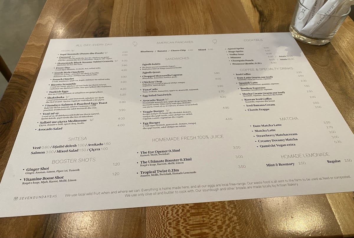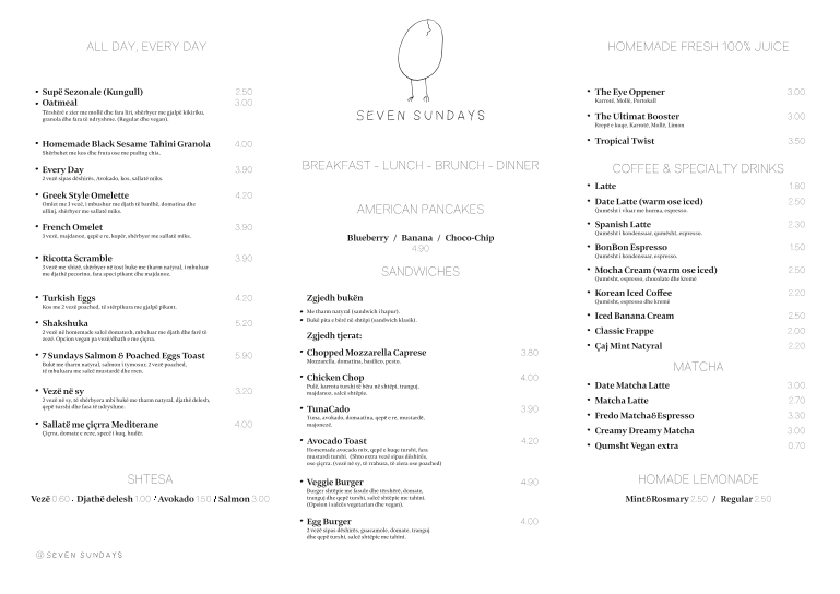 Seven Sundays Menu