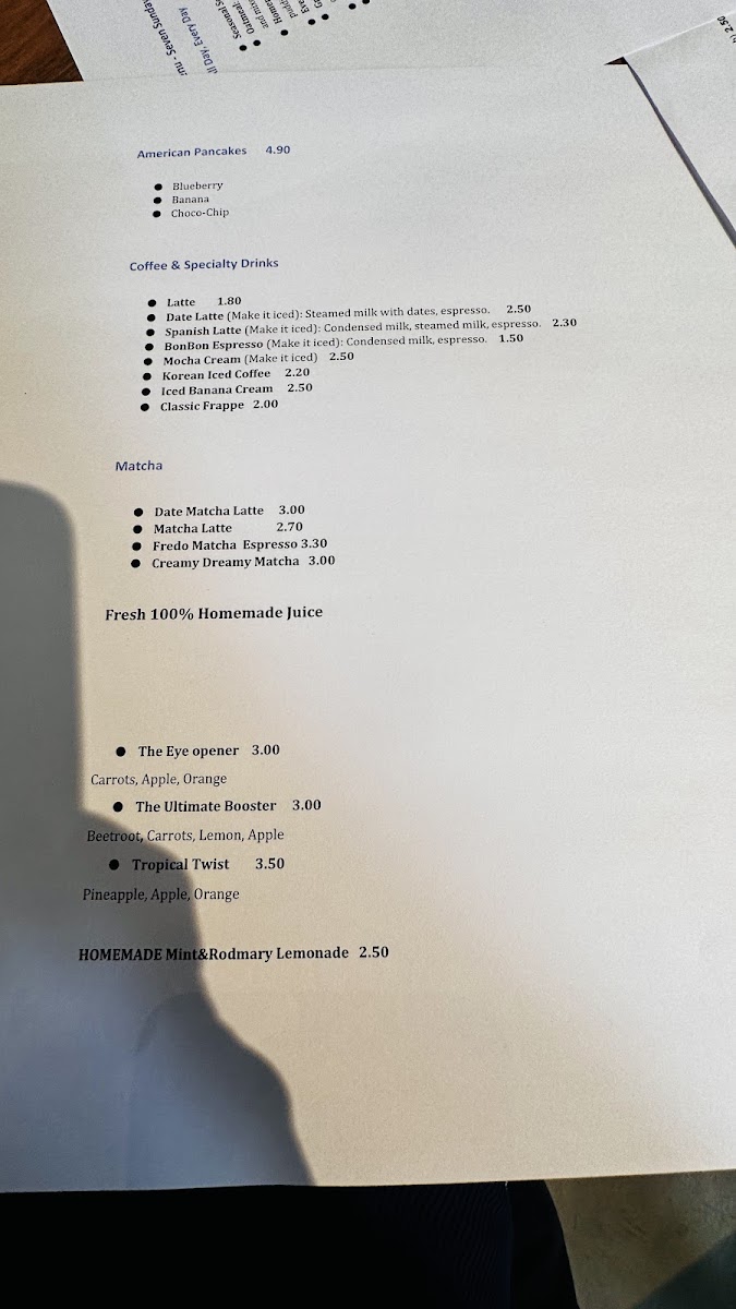 The menu at Seven Sundays offers a variety of options suited for breakfast, brunch, and light meals throughout the day. Guests can choose from a selection of coffee-based beverages, teas, and specialty lattes, as well as fresh juices and other drinks.